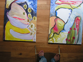 [I actually take pictures of bigger works like this by standing on a chair, holding the camera above my head, and pretty much hoping for a good shot…see some better shots of the paintings HERE! :) ]